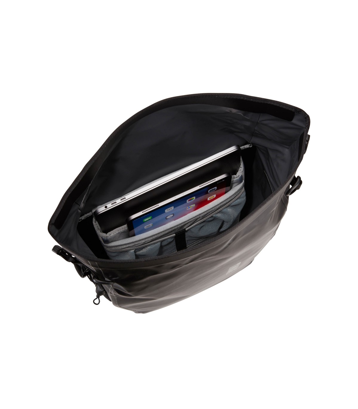 El portabultos Thule Tour Rack patentado se fija en la parte frontal o trasera de la mayoría de las bicicletas, sean bicicletas de montaña de suspensión completa o bicicletas urbanas de uso diario.